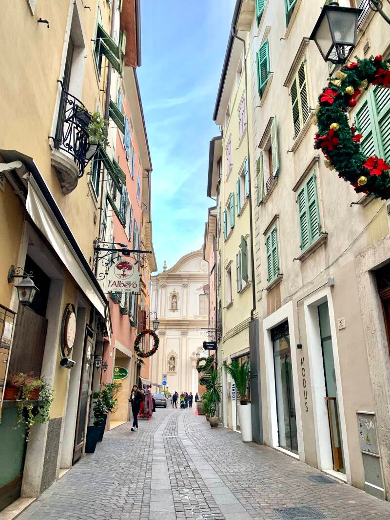 Cette petite ville surnommée « le joyau du lac de Garde » nous a laissé une belle impression bien que nous ne l’ayons que « survolée ». Lors de ce séjour, suite à une déchirure ligamentaire, j’étais immobilisée en chaise roulante, ce qui ne nous permettait que peu de visite. Ajoutez à cela que nous étions le 1er janvier avec toutes les fermetures que cela implique et vous comprendrez que notre passage à Riva del Garda était très court.