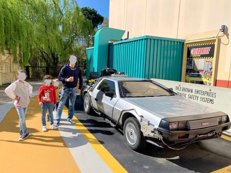 L'ambiance du parc donne aux premiers abords une impression de Walt Disney Studios à Disneyland Paris. Les couleurs et l'architecture semblent relativement pareils. Mais ici, pas de référence Disney, il s'agit du cinéma en général avec pourtant peu de focus sur des films très connus. Quelques allusions par-ci par-là à un célèbre long-métrage comme l'exposition d'une reconstitution de la très connue Delorean de retour vers le futur ou quelques fresques murales à l'effigie de quelques icônes telles que les blues brothers ou autres figures du cinéma américain. Mais peu importe, ce qui nous a charmé c'est l'ambiance du parc. Cette impression d'être dans les coulisses d'un plateau cinéma, se promener d'un univers à un autre et tester des attractions inédites pour nous.