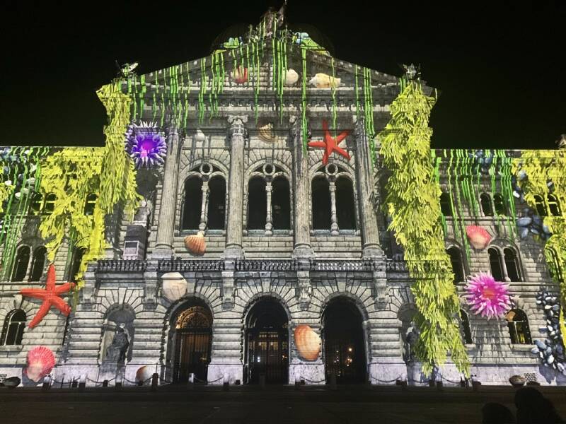En fin d’année, lorsque la nuit tombe rapidement, vous pouvez assister à un son et lumière sur la façade du palais directement en vous positionnant sur la place fédérale. Un rendez-vous annuel que nous ne manquons pas. L’affluence y est agréable dans la mesure où le spectacle est joué tous les soirs pendant environ un mois à raison de plusieurs représentations par soirée.