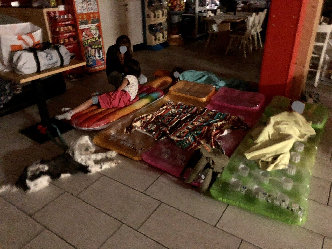 En attendant notre rapatriement le surlendemain, nous dormirons plutôt confortablement sur le sol du restaurant sur nos matelas de piscine gonflables.