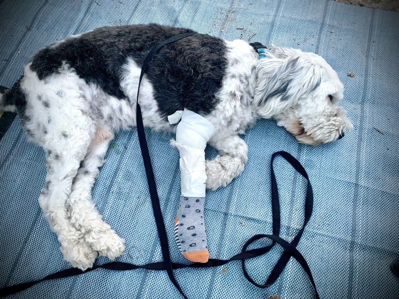 L’été 2023 ne sous a décidément pas épargné. Avant la destruction partielle de Benny dans la tempête (Réagir dans une tempête) c’était notre pauvre Toutou Fenice qui se blessait à une griffe et avait besoin d’une petite opération sous anesthésie en Italie.