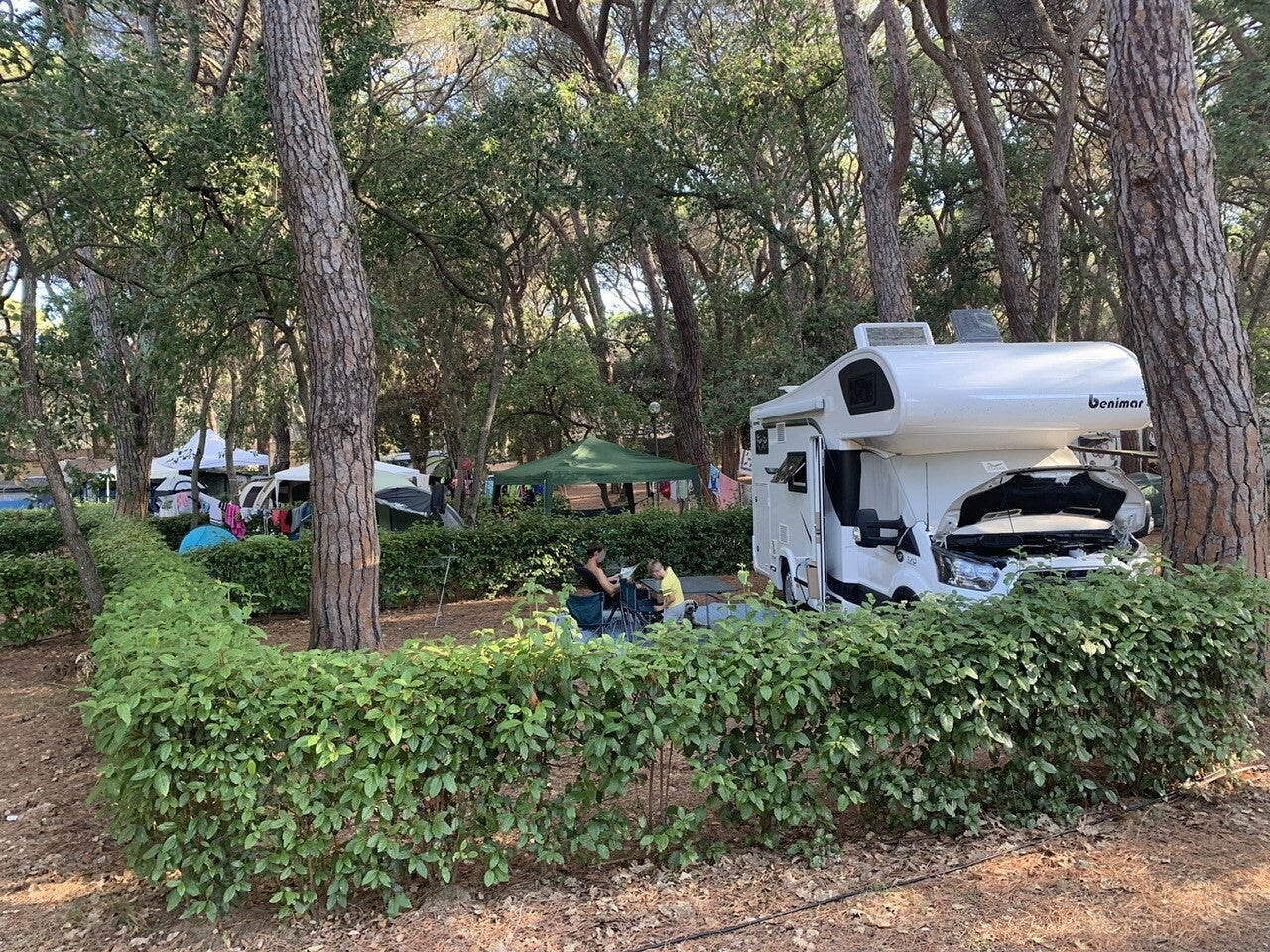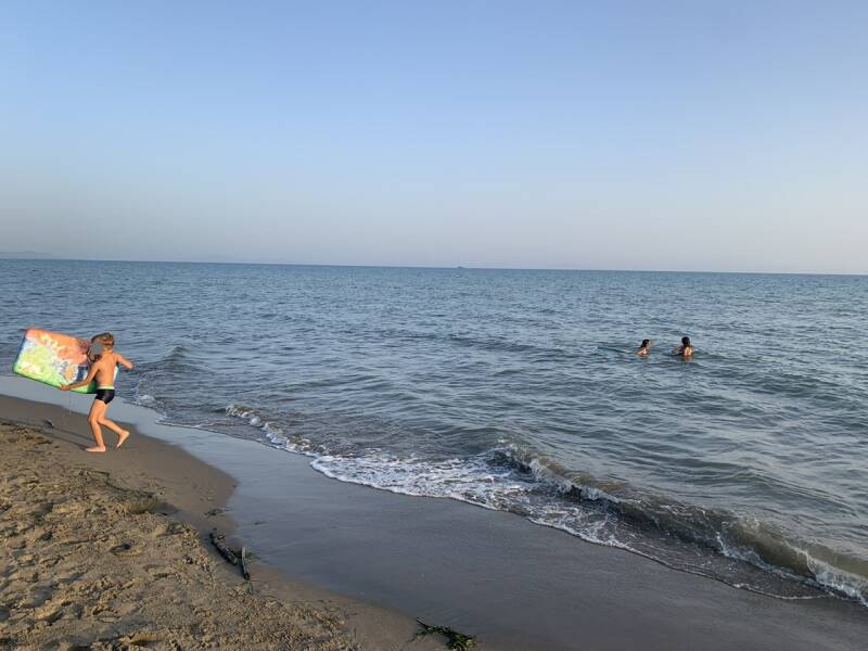 Notre camping, le Gita Village « Le Marze » est loin de tout, perdu au milieu d’une forêt de pins maritimes bordant la Méditerranée. L’accueil y est sympathique, les emplacements relativement grands et l’ombre omniprésente sous ces grands arbres. Nous avons été surpris par le bruit totalement assourdissant des cigales et même en fin de vacances nous n’aurons pas pu nous y habituer. Le retour au calme est bienvenu le soir, les cigales laissant place aux hiboux petits ducs que nous n’entendons pas dans notre région de Suisse et qui raviront Moyenne Fenice qui a depuis peu des passions ornithologiques.