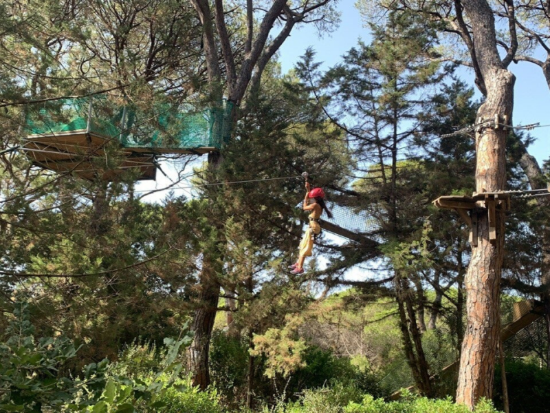 En fin de journée, quand la chaleur est plus acceptable, nous profitons du parc d’accrobranche jouxtant le camping. Nous y payons 32 euros pour nos 3 petits Fenice qui peuvent ainsi s’y dépenser et s’y amuser pendant 2 heures. Les parcours sont sympas et ils y ont un grand plaisir.