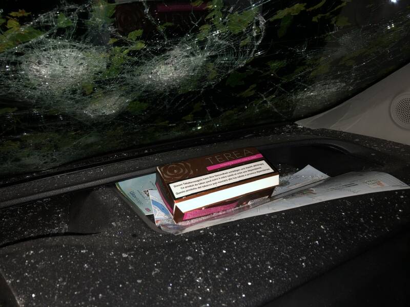 L’été 2023 nous devions partir pour 3 semaines, découvrir principalement le nord de l’Italie, la Toscane puis finir notre voyage en visitant Pompéi et le Vésuve, lieux qui me tenaient particulièrement à cœur. Les événements en ont décidé autrement puisque dès le début des vacances Toutou Fenice s’est blessé à une griffe nécessitant une opération en Italie puis un bandage quotidien l’empêchant de bien marcher. Nos plans ont donc été modifiés pour aller à la cité Antique d’Ostie au lieu de Pompéi et du Vésuve, puisqu’il était clair qu’il ne pourrait pas marcher autant sous cette chaleur. Finalement, sa patte ayant de la peine à se rétablir nous avons encore une fois modifié nos plans pour remonter au lac de Garde où nous avions nos habitudes et où tout était plus simple avec notre petit blessé. Nous connaissions aussi à présent bien le vétérinaire qui avait opéré Rio quelques jours plus tôt. Mais là encore, le destin avait un autre programme pour nous et c’est ainsi que notre voyage s’est brutalement arrêté suite à une tempête de grêle particulièrement virulente, détruisant une partie du camping-car et nous forçant à nous faire rapatrier avant l’heure prévue de la fin des vacances.