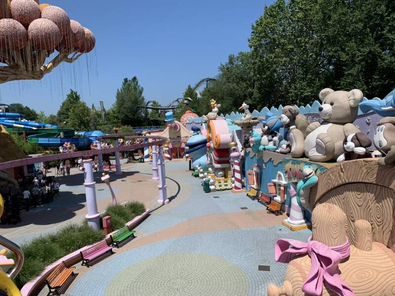 Amortissement de pass annuels oblige: en avant pour Gardaland! Nous n’y ferons que quelques petites attractions où nous passerons sans faire de queue grâce à notre pass annuel qui nous donne droit à des billets coupe-file et nous retournerons ainsi très vite vers notre petit blessé. Pas du tout lassés de Gardaland, c’est pourtant une façon que nous apprécions à présent pour visiter les parcs d’attractions: plus régulièrement mais à petites doses, sans stress, en se laissant du temps pour bien se reposer aux alentours de Benny.