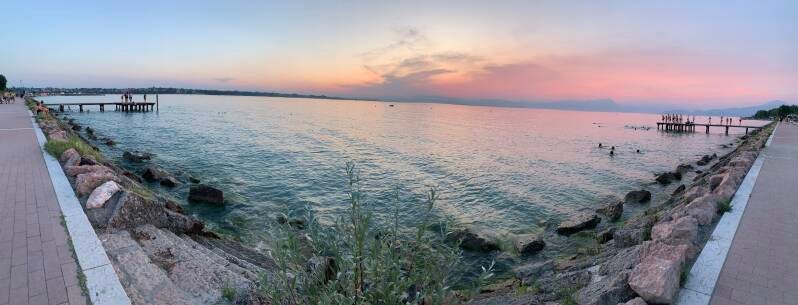 Nous peinons à traverser le tunnel du Gothard avec 2 heures de bouchons, attente habituelle à chaque veille de vacances à cet endroit. Le voyage se passe très bien, les autoroutes italiennes nous sont agréables malgré la grande vitesse puisque nous y trouvons beaucoup de respect entre les conducteurs qui tiennent notamment très bien les distances de sécurité. Nous arrivons au camping Gasparina à Castelnuovo-del-Garda, tout proche de Gardaland. Ce camping est familial, financièrement abordable et très sympathique. Nous y avons déjà nos petites habitudes et nous sommes heureux de retourner en ces lieux tout bord de l’eau avec un très beau paysage (pour qui a la chance d’avoir vue sur le lac depuis sa parcelle).