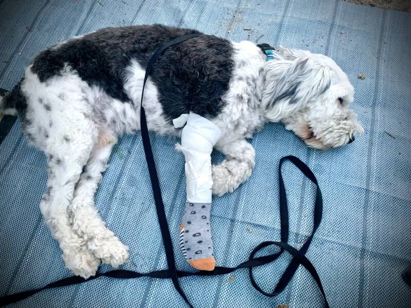 Malheureusement, en fin de journée tandis que M. Fenice sort du camping-car accompagné de Toutou Fenice, ce dernier s’encouble tout seul dans une marche de Benny et s’arrache en partie une griffe. Devant cette blessure nous filons à Lazise chez un vétérinaire que nous venons de contacter et nous demande de venir au plus vite. Là, notre toutou sera opéré sous anesthésie pour lui retirer toute la griffe. Un gros pansement et une bonne heure plus tard nous reprenons la route du camping où Toutou Fenice devra se reposer plusieurs jours sans trop marcher. Nous devrons retourner tous les deux jours pour contrôler sa plaie et refaire le pansement.