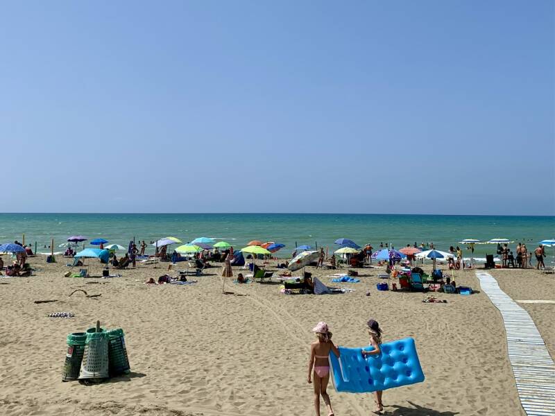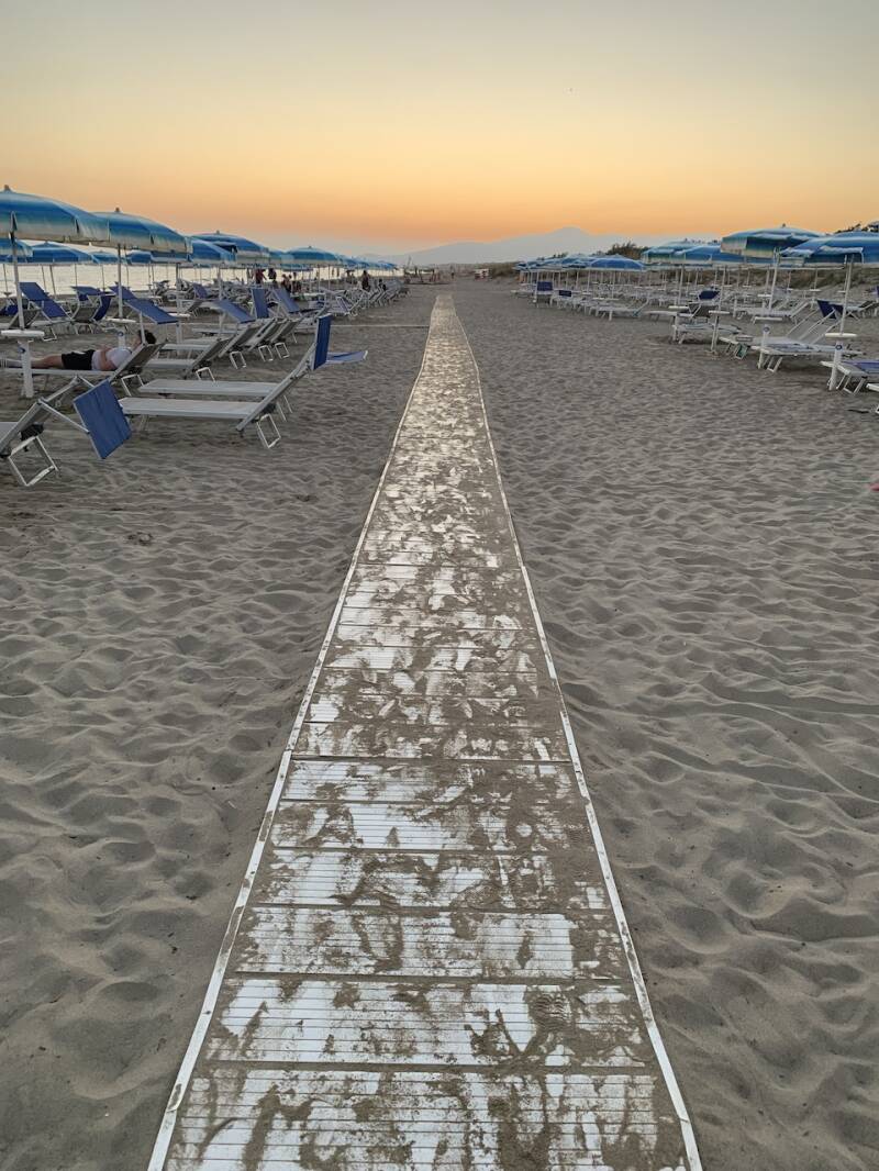 Ce matin nous nous rendons compte que nous manquons de matériel pour continuer les soins quotidiens de Toutou Fenice et nous roulons jusqu’à Marina di Grosseto pour trouver une pharmacie où se ravitailler. L’endroit semble magnifique mais nous ne n’y attarderont pas car nous ne pouvons s’y promener avec Toutou Fenice sous cette chaleur avec sa patte et il ne peut rester ainsi sur un parking en ville dans le camping-car dans un lieu non sécurisé et par cette chaleur qui plus est.