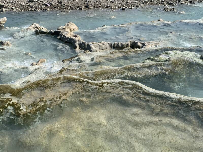 Toutes en terrasses calcaires, elles ressemblent à des dizaines de petites piscines à débordement naturelles. Certaines plus petites que des baignoires ne peuvent accueillir qu’un baigneur tandis que des bassins bien plus grands permettent presque d’y faire une petite brasse. L’eau jaillit à 37 degrés des entrailles de la terre dans une magnifique cascade surplombant les bassins. L’entrée y est gratuite et vous pouvez y accéder à toute heure du jour ou de la nuit. Nous apprendrons que la nuit y est merveilleuse, mais nous ne la verrons pas de nos propres yeux.