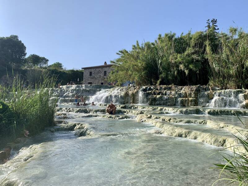 C’est ainsi que nous avons l’idée de passer un petit bout de journée aux cascades de Saturnia. M. Fenice vous dirait que c’était sans doute le moment le plus spectaculaire de nos vacances.