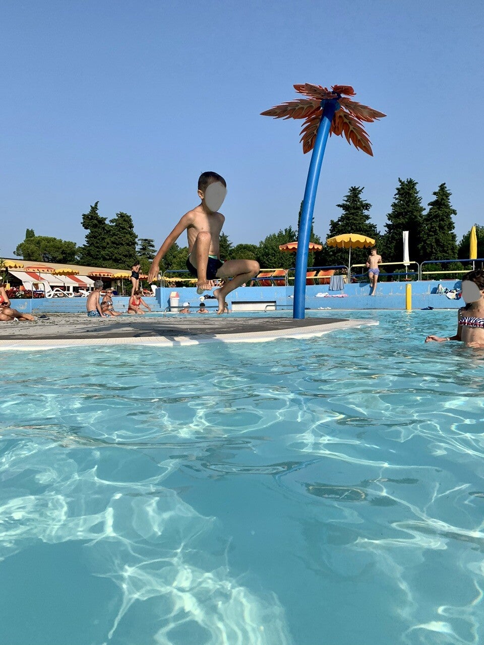 Fidèles à nous-mêmes, nous ne tardons pas à retourner à Gardaland profiter de nos attractions préférées. Le soir, c’est un plaisir pour toute la famille de retrouver la piscine où Moyenne Fenice a appris à nager au début des vacances. Nous aimons ce camping, tout le monde est heureux d’être là.